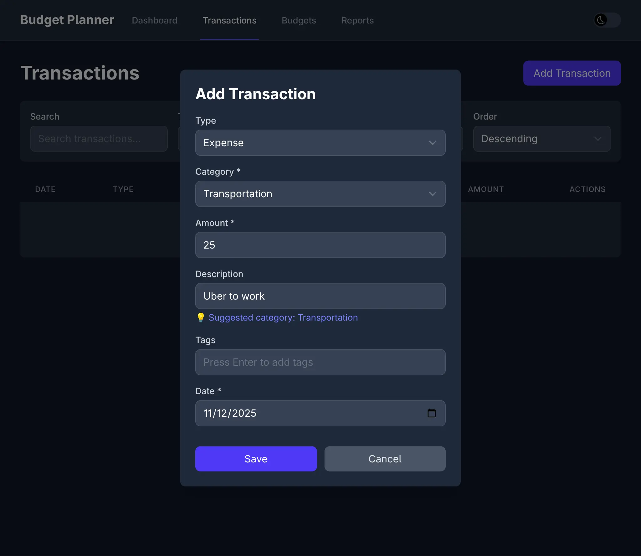 When users add a transaction, try to predict the tag from the Description, e.g: